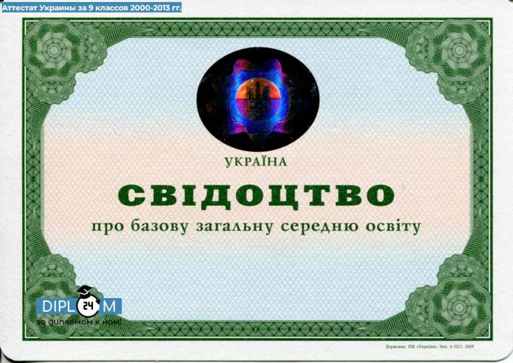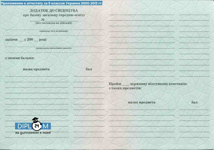Аттестат 9 классов Украины 2000-2013 гг.